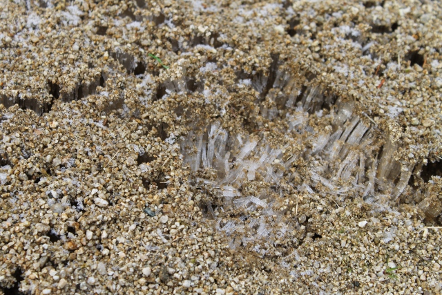地割れしてるんです。すぐには霜柱と気づきませんでした。