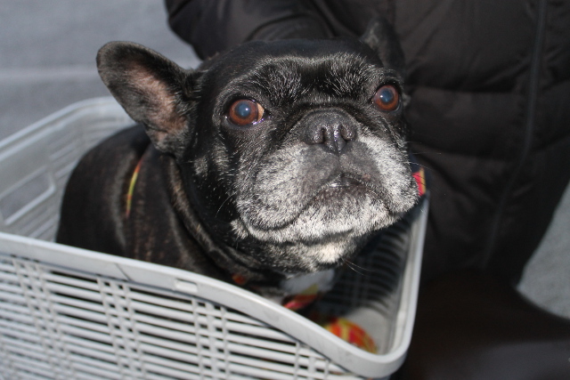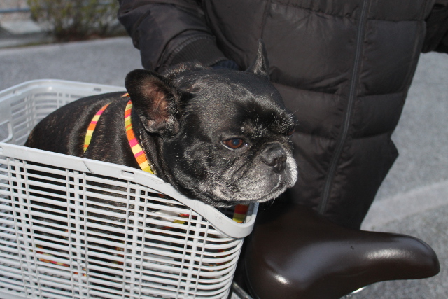自転車(じてんしゃ)の荷台(にだい)にフレンチブルドッグを乗(の)せた男(おとこ)の人(ひと)が私(わたし)を呼(よ)んでいました。