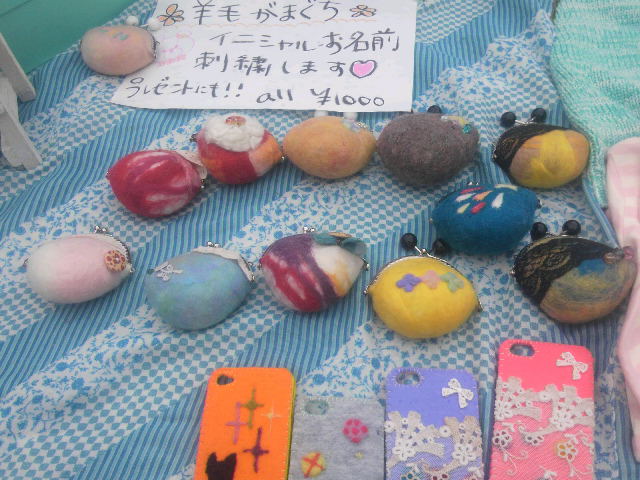 手作り(てづくり)の羊毛(ようもう)がまぐちを売(う)っていました。とってもかわいかったです。