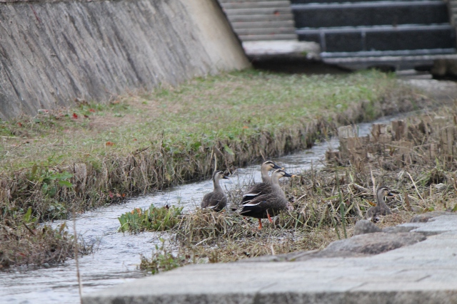 見送るカモたちがいました。彼らは落ち着いています。