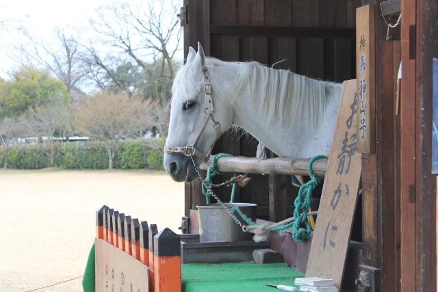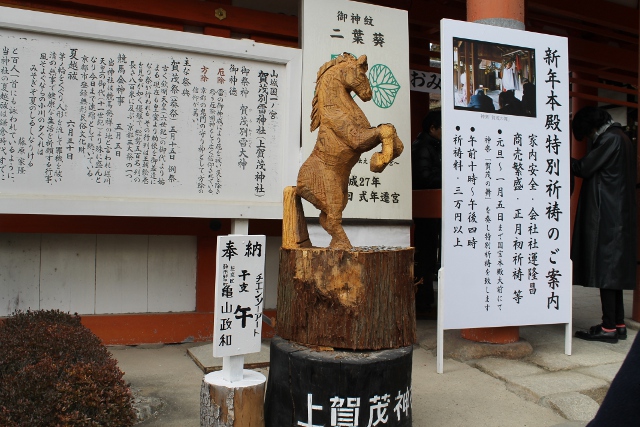 恒例(こうれい)の京都(きょうと)への初詣(はつもうで)に行(い)ってきました。京都(きょうと)と言(い)えばやはりここかなと思(おも)っています。今年(ことし)は、午年(うまどし)ということで、チェーンソーで彫(ほ)られた木彫り(きぼり)の馬(うま)が飾(かざ)られていました。