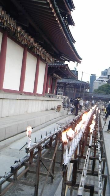 四天王寺さんの中心伽藍の周りに1万本のろうそくを立てて、先祖を思い手を合わせます。