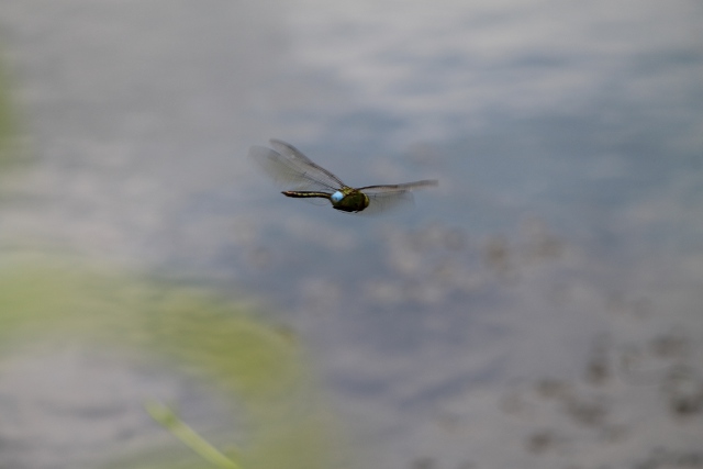 池も暑そうですよね。鳥たちにピントを合わしていると急にこんなのにピントが合いました。一回だけシャッターを押すことが出来ました。きれいなトンボの飛翔です。