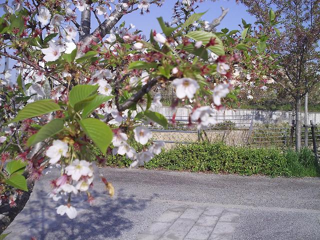 この前、満開近い桜だと思っていた池の周りの桜が葉を出して鮮やかなみどりが爽やかに輝いていました。