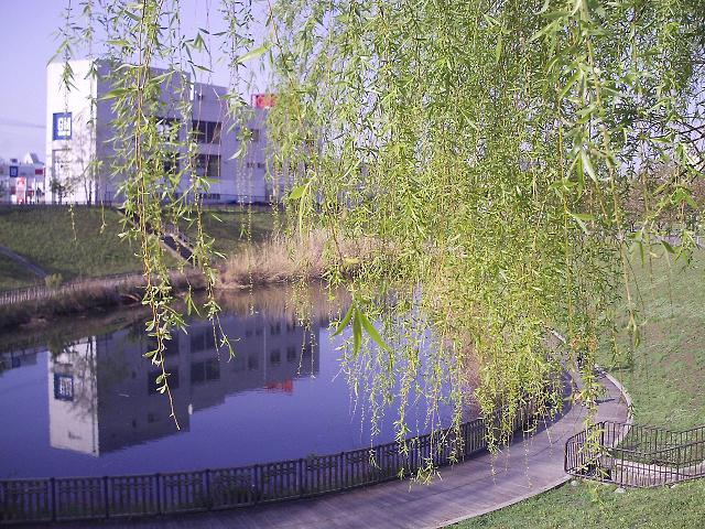 池に写る 風景眺む 柳あり