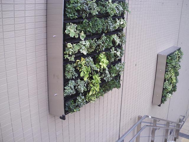 途中の壁には、垂直のプランターが据えてけられ、グリーンが生き生きと育っていました。