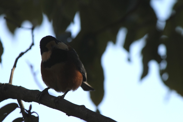 ベンチに座(すわ)って持参(じさん)した蜜柑(みかん)を食(た)べていると、餌場(えさば)から道(みち)を渡(わた)るようにして私(わたし)の頭(あたま)の真上(まうえ)に飛(と)んできました。