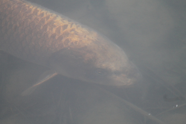 千里川(せんりがわ)に棲(す)んでいる金色(きんいろ)に光(ひか)った鯉(こい)です。人面魚(じんめんぎょ)?大(おお)きくなったような気(き)がします。
