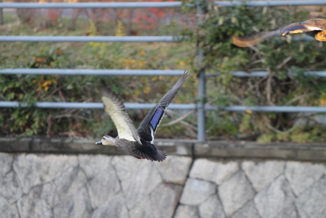 バサバサッと羽根(はね)を羽(は)ばたかせて下流(かりゅう)の方(ほう)へ飛(と)んでいきました。