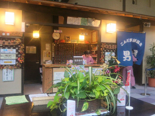 温泉のフロントの写真です。今まで行った日帰り温泉の中ではかなり広い浴場でした。