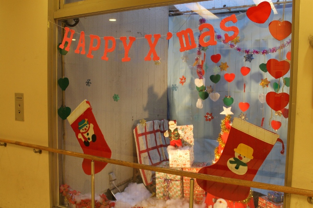 窓飾りがいよいよクリスマス・バージョンになりました。