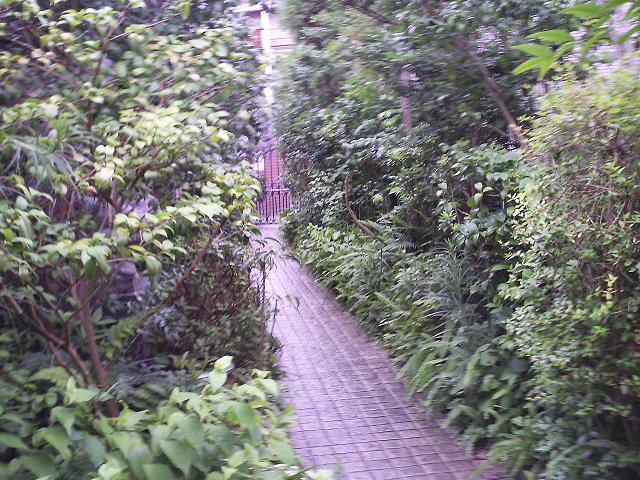 あるお宅の門扉から玄関までの通路です。両側に色々な植木を配し、あたかも温室の中にいるような感覚になります。