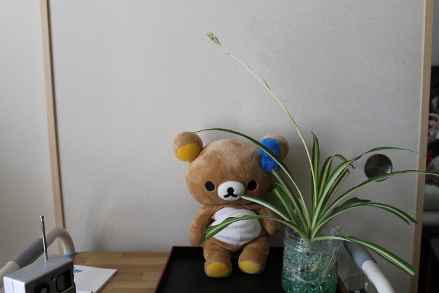 アクアプチプチ(?)の中に入れていたオリヅルランがぐんぐん成長しました。