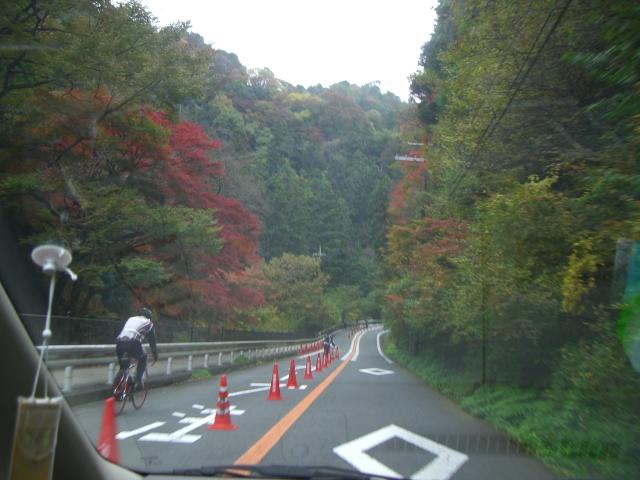 山の上では道の真ん中にコーンを並べて右側だけを走るようにしていました。何のためにこんなことしているのかなと思いましたが、紅葉を見ながらゆっくりと走るのを阻止したいんですね。道が細いと後ろから来る車が気になってゆっくりと紅葉を見ながら走ることができませんでした。