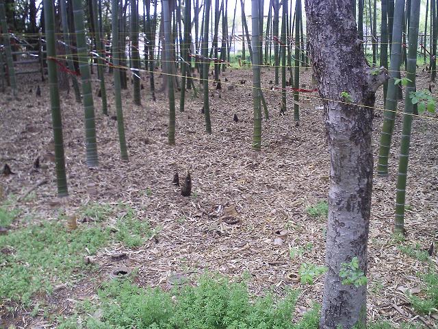 昆虫館までの道の途中に竹林がありました。たくさんのタケノコがニョキニョキ生えていました。