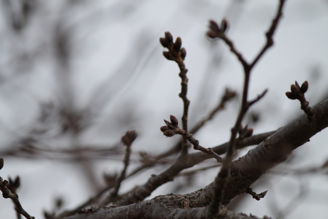 梅は咲きましたが、桜の蕾はまだまだ固く閉じられていました。