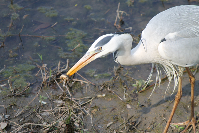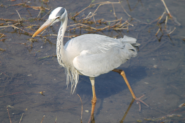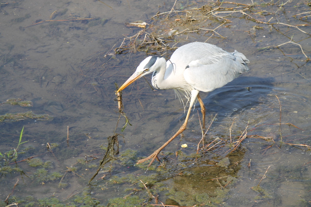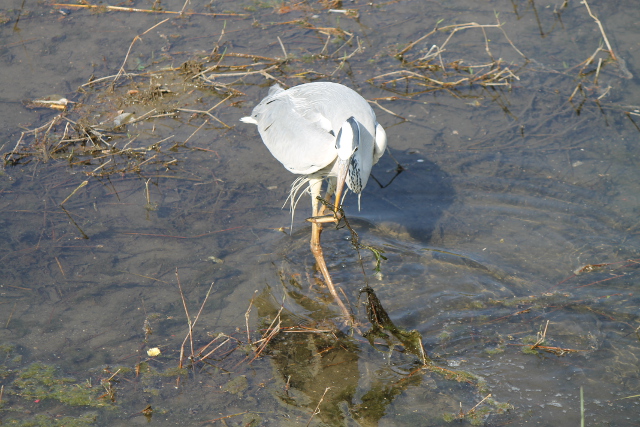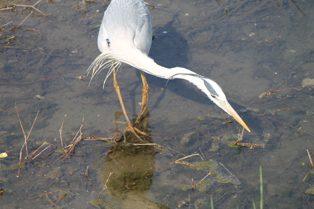 鴨川(かもがわ)で撮影(さつえい)しました。たぶんアオサギでしょうが最初(さいしょ)すごく細(ほそ)い鳥(とり)に見(み)えました。