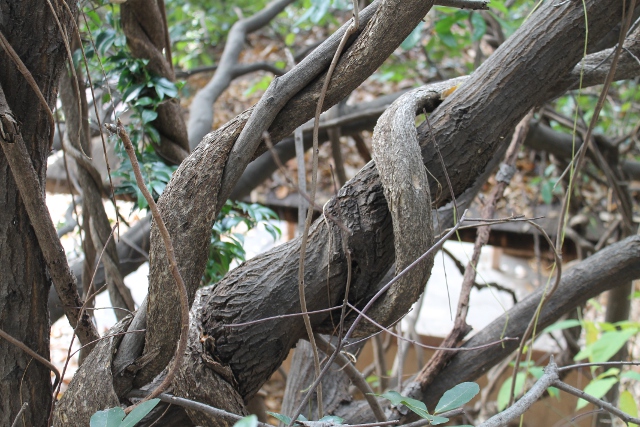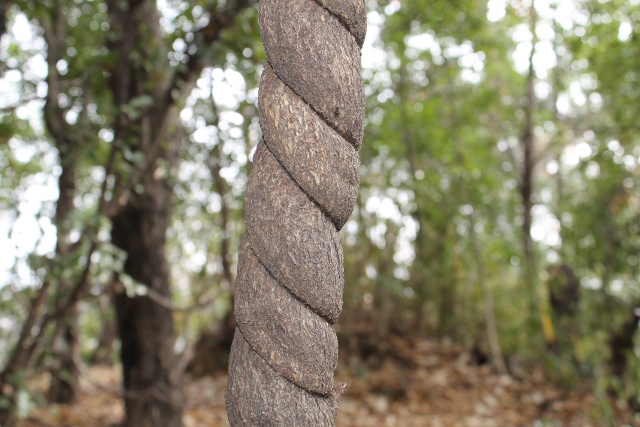 自然(しぜん)の中(なか)にいて、人間(にんげん)の手(て)が入(はい)らないと木(き)もこんなふうにもつれるのでしょうか?ちょっと面白い(おもしろい)木(き)とツルを見(み)つけました。