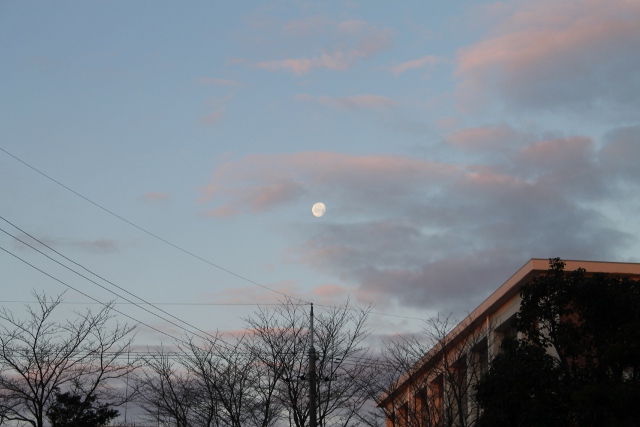 昨日の朝、撮影した有明の月です。朝の光の中、よく光っているお月様でした。
