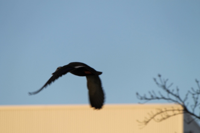 昨日の写真に登場した鴨の飛翔です。カメラの設定を変えずにそのままカメラを向けてシャッターを押したのでかなりぶれてしまいました。