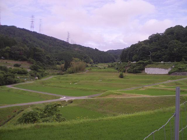 7月の山の風景です。小さな棚田のいねがしっかりと緑色になってきました。