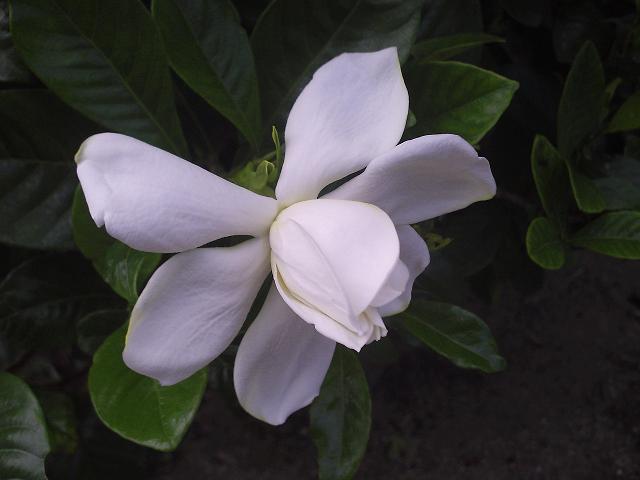 梔子の花がほんとに一つだけきれいに咲いていました。株の周りを見回しましたが、一つだけの花でした。