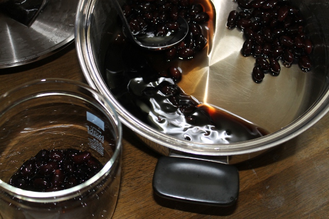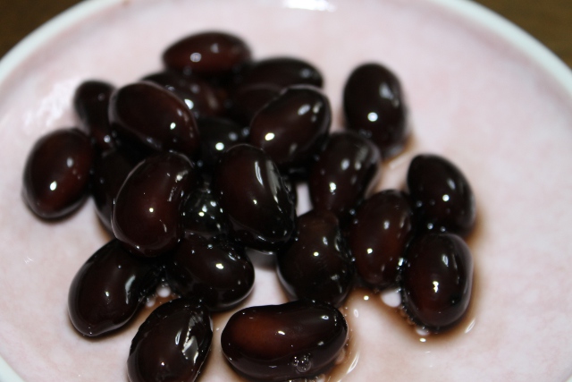 大晦日(おおみそか)から一晩(ひとばん)おいて黒豆(くろまめ)を食(た)べてみました。大(おお)きな実(み)でほの甘(あま)く美味(おい)しかったです。
