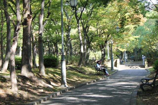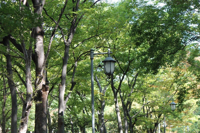 昼下がりの並木道です。今日の太陽は10月末だというのに陽射しがきつく、帽子が欲しくなりました。