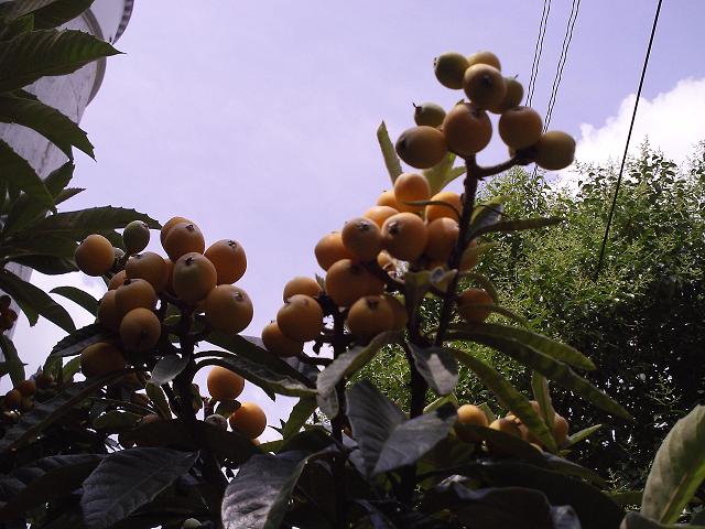 梅雨の晴れ間の陽射しを浴びて枇杷の実が光っています。この前見た時に比べて一つ一つがまーるく、大きくなっているようです。