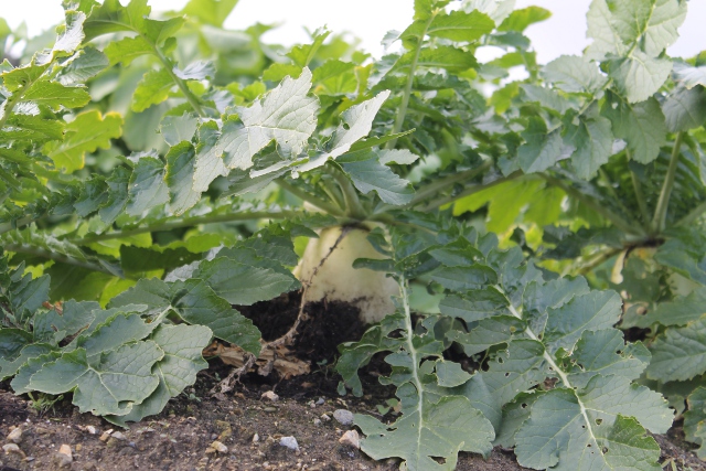 こちらは真っ白(まっしろ)な大根(だいこん)が顔(かお)を出(だ)しています。