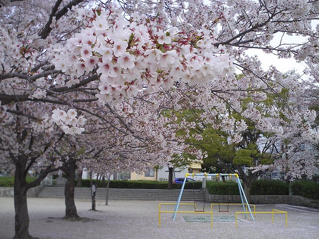 公園のグラウンドは白い花びらで一杯でした。
