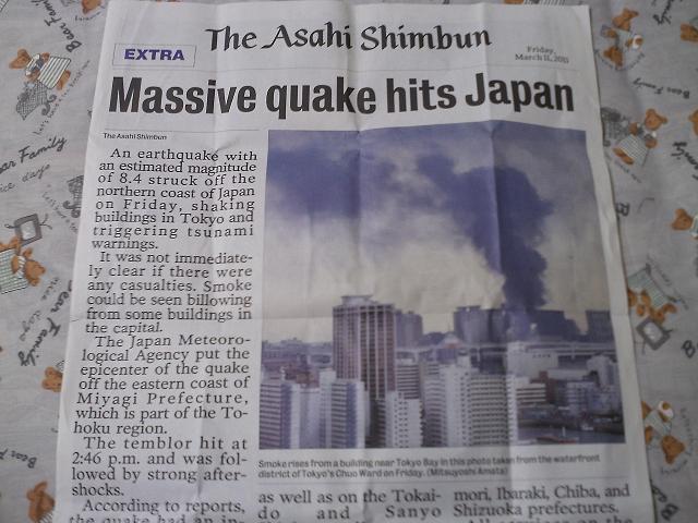 ニュースを見るたびに、死者の数や行方不明者の数が増え、、映画のような津波の映像を見て驚くばかりです。ただいまの気がかりは、福島の原発です。
