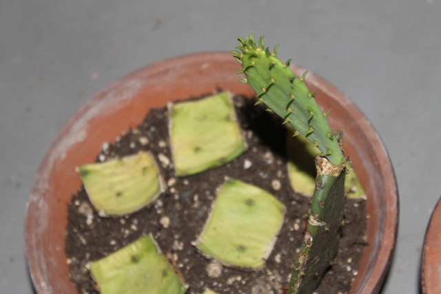 右端の立っているサボテンにはこの段階では芽もはっきりとはわかりませんでした。