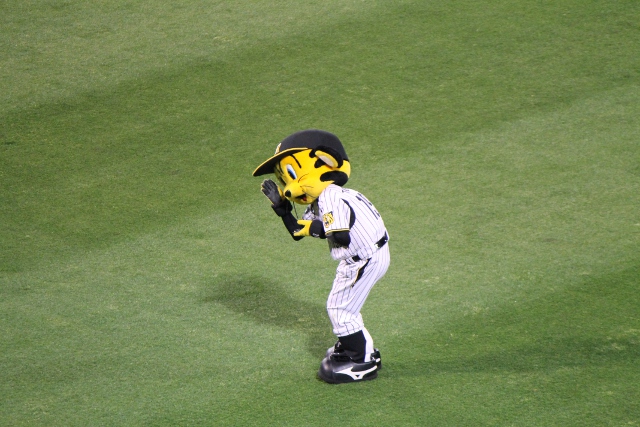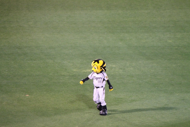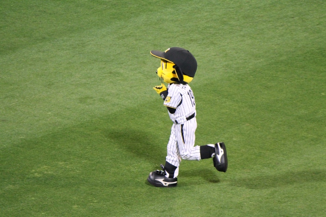 トラッキーがレフト外野付近にやってきて、バック転を見せてくれました。