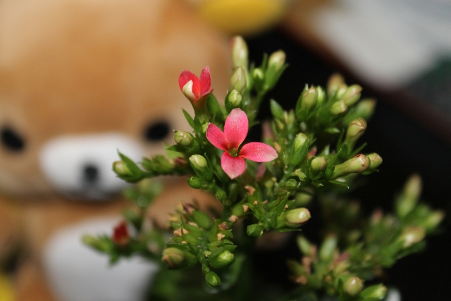 花屋さんで買ったときには一輪だけ咲いて残りのつぼみは次第に小さくしぼんでしまったのですが、新しいつぼみがむくむくと湧き出し、とうとう開花しました。