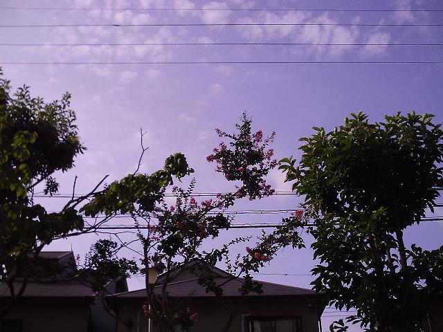 朝、ベランダの窓を開けて家人が百日紅の木に花が咲いているのに気がつきました。