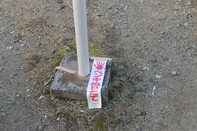 ペンキ塗りたての標示が目に入りハッと気づくと目の前のポールが真っ白になっていました。