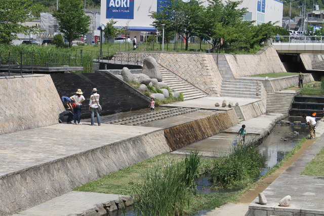 日曜日(にちようび)、箕面(みのお)キューズモールの中(なか)を流(なが)れる千里川(せんりがわ)です。