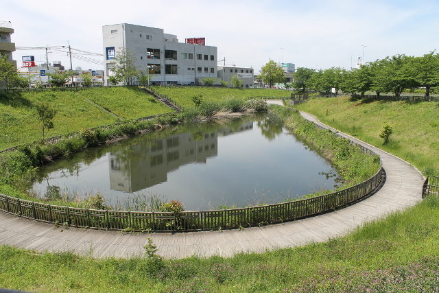 千里川(せんりがわ)の横(よこ)にある調整池(ちょうせいいけ)です。冬(ふゆ)の間(あいだ)はバンのすむ池(いけ)なのですが、姿(すがた)は見(み)えませんでした。