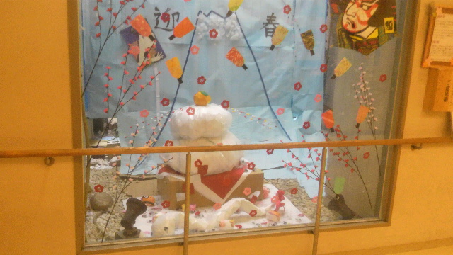 お正月を迎えて病院の窓飾りが華やかになりました。