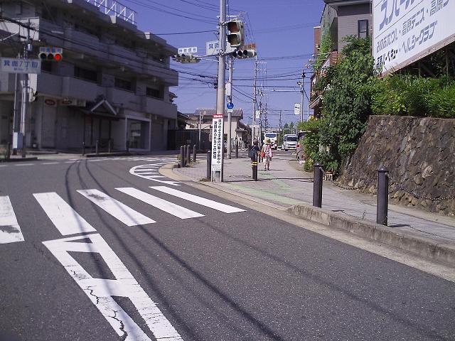 箕面7丁目の交差点で車を停めて信号待ちをしていると、箕面の山手の住宅街の方から小さい女の子と男の子が手をつないで歩いてきました。かなり小さいと思うのに、おとながいません。
