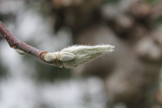 更紗木蓮(さらさもくれん)の新芽(しんめ)です。近(ちか)づいてよく見(み)ると見事(みごと)な作品(さくひん)に見(み)えてきませんか。