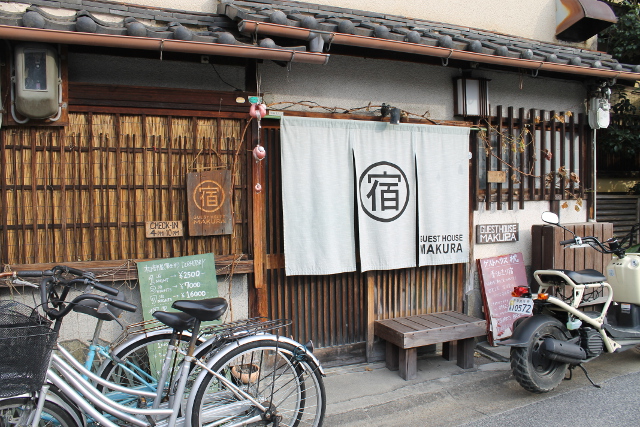 これが奈良町(ならまち)にある有名(ゆうめい)な旅館(りょかん)、マクラ屋(や)さんです。男女別々(だんじょべつべつ)の相部屋(あいべや)一泊(いっぱく)2500円(えん)だそうです。