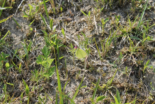 上の黄色い蝶々が見えますか?下の写真は白いチョウです。
