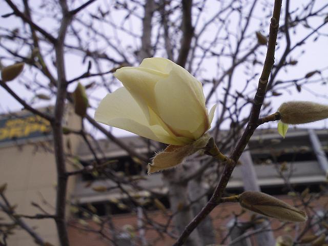 この前見た時にはまだ蕾が固そうだったのに今朝見ると咲いていました。朝冷えの中、身を固くして咲き始めている花を見て季節は巡るということを実感しました。