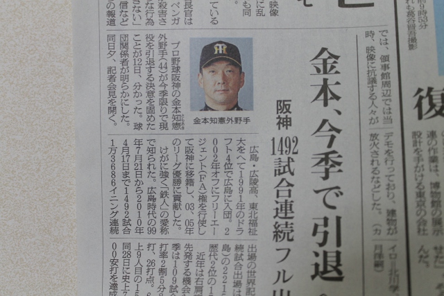 金本の引退のニュースをラジオの中継が始まったときに知りました。