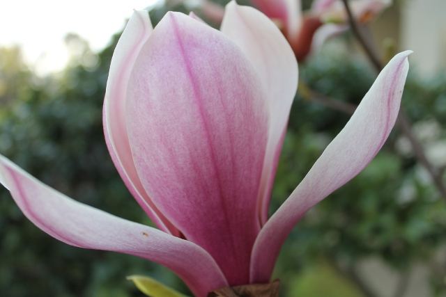 朝一番にカメラをもってまわりの花たちを観察に行きました。更紗木蓮はもう終わりかけですね。