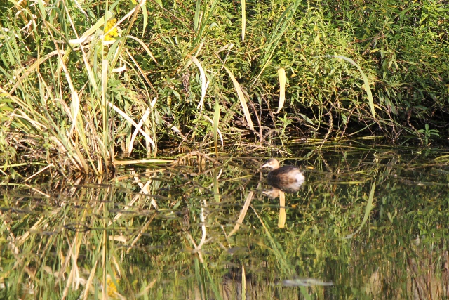 池の向こうの方に何かがいるのはわかるのですが、水鳥なのかどうかは撮影してはじめてわかりました。