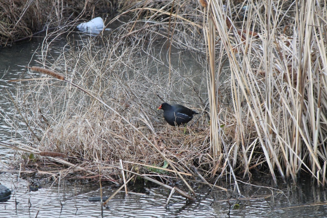 バンというのは留鳥と言うことで一年中この池辺りに暮らしています。この写真は川で撮影したのですが、昨年は隣の池に巣を作ってひなをかえしていたようで、小さな鳥が三匹ほど登場していました。最近その子どもたちをあまり見ません。どうしたのでしょうか、ちょっと心配しています。