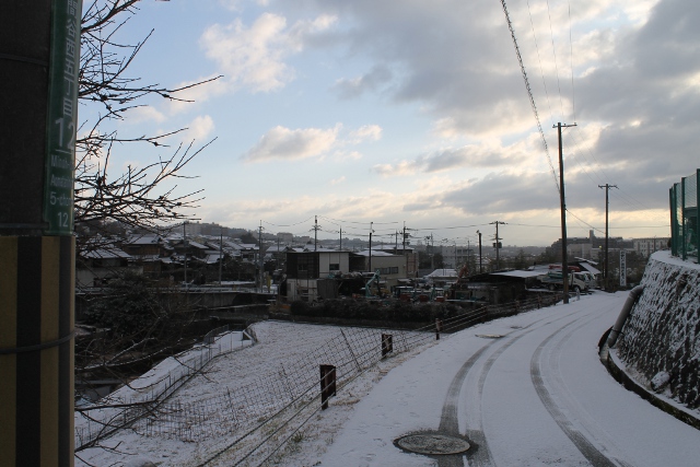今年(ことし)初(はじ)めての積雪(せきせつ)の朝(あさ)。